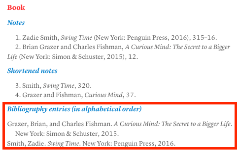 - Adhere to the Chicago Manual of Style’s notes and bibliography style citation, using bibliography-style references (the style with periods rather than commas — an example can be found in the selected area in the image above).